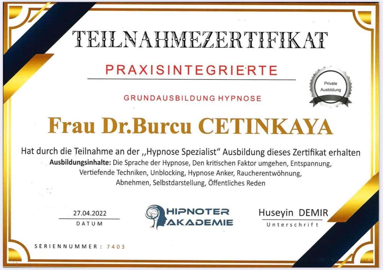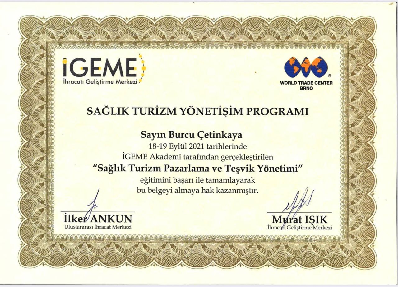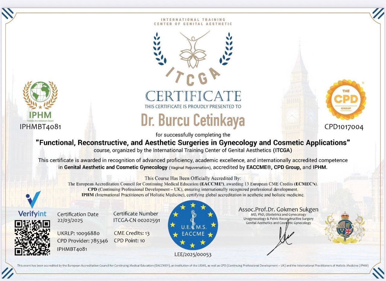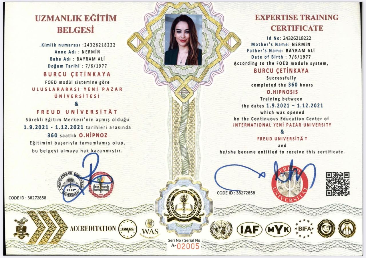 2009 yılında Ege Üniversitesi’nde Endo-Laparoskopik Cerrahi Eğitimi aldı. 2016 yılında İsviçre Riccon Academy Psikoloji Eğitimi ve Cinsel Terapi Danışmanlığı konusunda sertifikasyonunu tamamladı. 2017 yılında Amerika Nortwest Ünivesitesinde Psikoloji Eğitimini tamamladı. Hipnoz ve Hipnoterapi üzerine çalışmalar yaptı. 2018 yılında Amerika’da Pasific Üniversitesi’nde Psikoterapi CEO Sertifikasyon ve Mesleki Eğitim Akreditasyonunu tamamladı. Dublin Üniversitesinde (IDU) Klinik Psikoloji Yüksek Lisans ve Doktorasını tamamladı . Freud Universitat ‘da hipnoterapi eğitimi aldı uluslararası sertifikasyonlu Hipnoterapist yetkisini aldı. Akademik eğitimlerine paralel olarak Uluslararası Bilimsel Hipnoz, Hipnoterapi, Regresyon Hipnoterapisi, Adli Psikoloji , Klinik Psikoloji bölümleri , Nörobilim , Cinsel Terapi Uygulama ve Eğitim Sistemleri , Estetik ve Kozmetik Jinekoloji üzerine eğitim , sertifikasyon ve çalışmalar yaptı. Başkent Üniversitesi İlişki ve Aile Danışmanlığı eğitimi sonrası Milli Eğitim Bakanlığı Onaylı Aile ve İlişki Danışmanı ünvanını aldı . Kişisel gelişime dair bir çok koçluk eğitimi , Nefes ve Mindfulness Eğitimi aldı ; TC Sağlık bakanlığı GETAT uygulama yetkisine sahiptir.